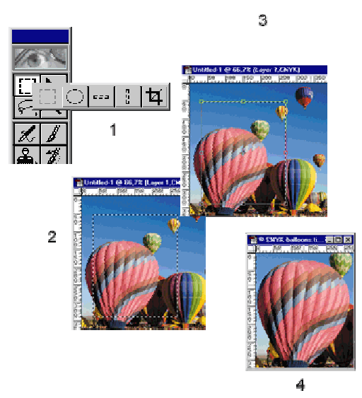 Para criar uma seleção de tamanho ou formato específicos, você usa as ferramentas (Marquee Opitions) Você também pode criar uma seleção selecionando as partes da imagem que você não deseja incluir e, depois, invertendo a seleção resultante.