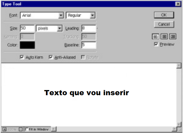 Dica: Antes de inserir um texto verifique se a cor de foreground (primeiro plano) esteja definida coma cor que você deseja para texto.