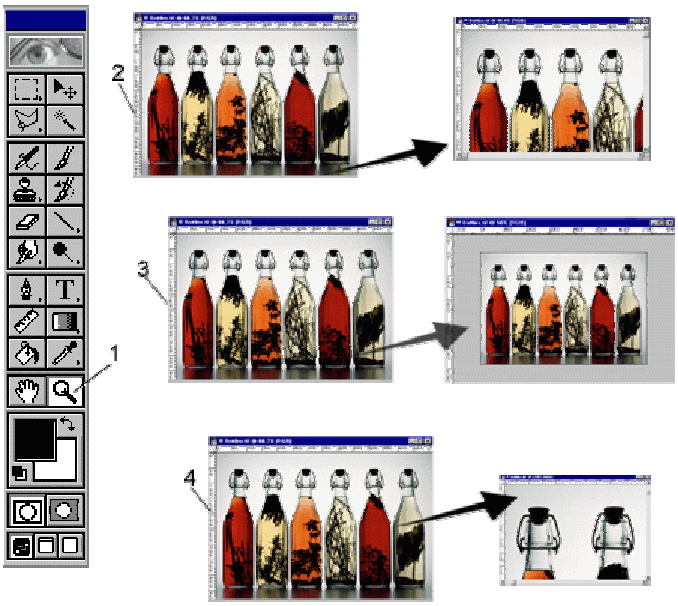 O Photoshop lhe permite visualizar imagens em qualquer tamanho do seu tamanho real. À medida que você trabalha no Photoshop, descobre que pode trocar entre as porcentagens de zoom freqüentemente, ampliando a imagem para trabalhar nos detalhes e reduzindo-a para ter "uma visão geral"