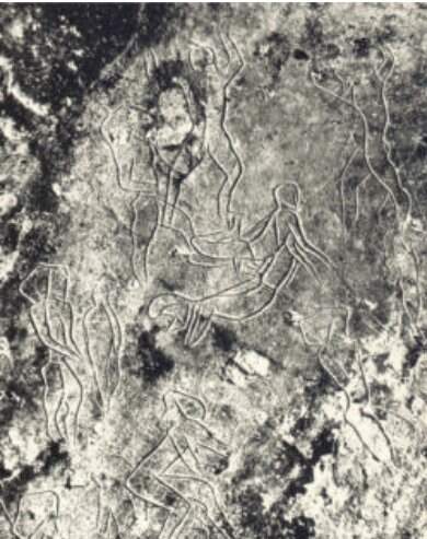 Figura 2- Figuras Humanas, encontradas na Caverna de Addaura, Monte Pellegrino, Sicília. Período Paleolítico, gravura sobre rocha, 6 x 10/8 “
