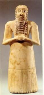 Figura 3 – Devoto sumeriano, encontrado no Templo Abu, no Iraque. Começo do Segundo Período Dinástico, 2600 a. C.. Gesso aplicado sobre pedra calcaria e concha branca, 11 ¾ “. The Metropolitan Museum of Art, New York, USA.
