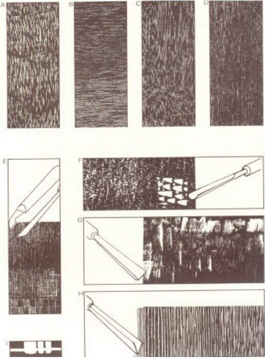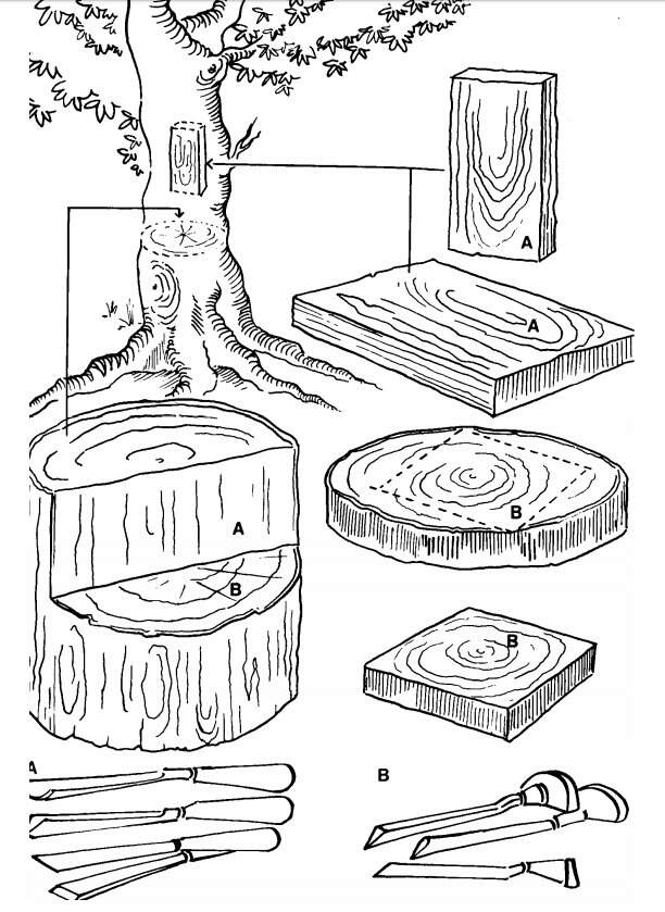 Existem duas formas básicas de preparar matrizes para impressões. Uma delas é pela utilização da madeira cortada no sentido longitudinal em relação ao tronco, ou seja, na direção de seu comprimento. A outra forma é por meio de cortes e incisões sobre fatias da madeira, ou seja,pedaços cortados transversalmente, no sentido vertical do tronco da árvore da qual ela é extraída. De acordo com o corte da madeira, as ferramentas utilizadas para as incisões são diferentes. No primeiro caso, são usadas goivas, formões e facas. No segundo, as ferramentas utilizadas são os buris de pontas diferenciadas. A ilustração a seguir permite compara os modos diferentes de corte da madeira e os tipos de ferramentas utilizadas.