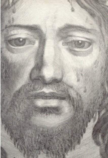 Figura 25 – Claude Mellan, “Sudariun de Santa Verônica“, detalhe, buril sobre metal, 16 3/4 x 12 ½, medida da gravura completa. Coleção University College London . Como se pode ser observar, a precisão do traço é básica nesse processo de gravação, daí seu uso na fabricação de notas e documentos bancários. A imagem a seguir mostra a aplicação da técnica em papel moeda.
