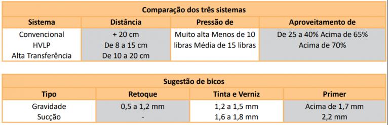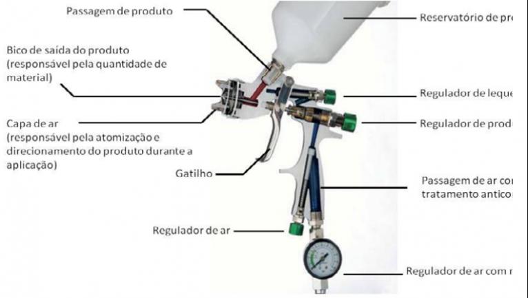 Dica: Uma boa pistola de pintura deve ter corpo e peças duráveis e ergonômicas, além de ter boa atomização, transferência e um bom leque.