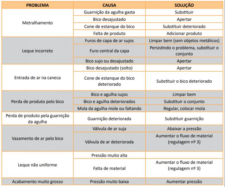 - Regular o leque e a vazão até obter o leque uniforme; 3 Reconferir a pressão do ar;