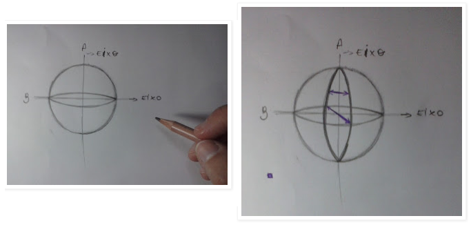 Agora, vamos dar profundidade a esse círculo que facilitará os seus futuros desenhos de objetos. Trace duas linhas de eixo dentro desse círculo.