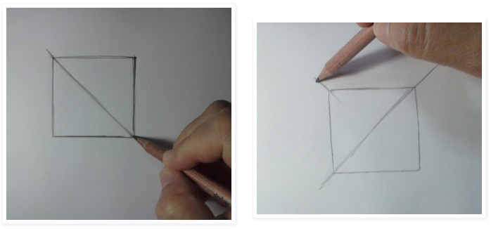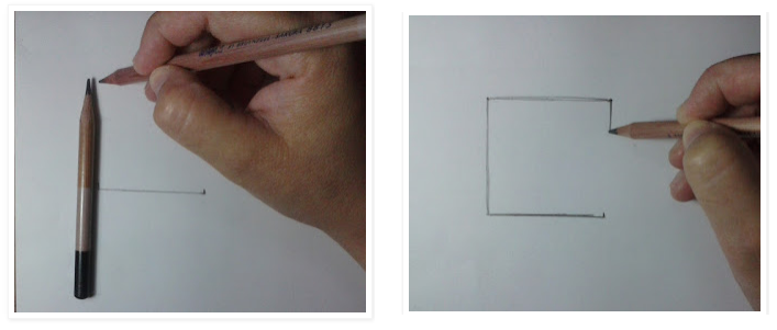 • Para os quadrados, use o lápis para tirar as medidas se caso a dificuldade de desenhá-lo a mão livre for muito grande, até você ganhar praticar e desenhá-lo livremente. Observe as fotos: