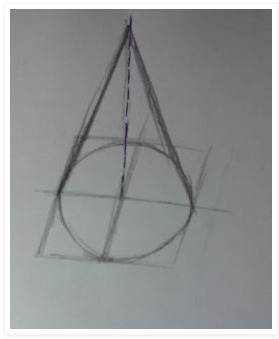 Assim como criamos um circulo, uma pirâmide, os cones também podem ser desenhado partindo de um quadrado, ou seja, se você desenhar dentro do quadrado um círculo e em seguida traçar a linhas horizontal e vertical e encontrar seu eixo, temos a base de um cone.