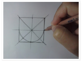Marque com um ponto onde as linhas se encontram e na primeira divisão das diagonais.