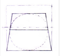 Primeiro construa um retângulo alongado e divida-o em quadro partes iguais, desenho o círculo dentro dele.