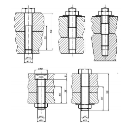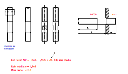 Pernos - haste cilíndrica roscada em ambas as extremidades.