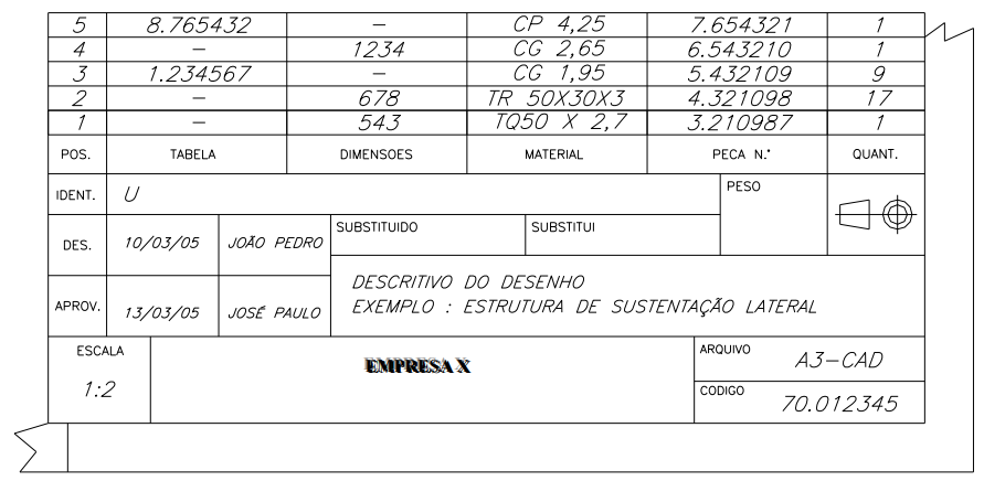 - O espaço para texto é separado em colunas com larguras apropriadas de forma que possível, leve em consideração o dobramento da cópia do padrão de desenho, conforme padrão A4.
