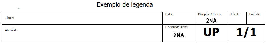 Toda folha de desenho deve possuir no canto inferior direito um quadro destinado à legenda. Este quadro deve conter o título do projeto/desenho, nome da empresa, escalas, unidades em que são expressas as informações, número da folha (caso o projeto tenha mais de uma folha), e outras informações necessárias para sua interpretação.