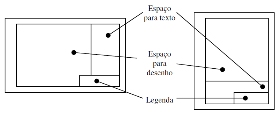 As margens são limitadas pelo contorno externo da folha e o quadro. O quadro limita o espaço para o desenho (Figura abaixo).