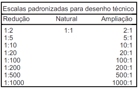 Deve-se sempre que possível, procurar fazer o desenho nas medidas reais da peça, para transmitir uma idéia melhor de sua grandeza. Para componentes que são demasiadamente pequenos, precisamos fazer ampliações que permitam a representação de todos os detalhes conforme norma. No caso inverso, isto é, para peças de grande tamanho, o desenho deve ter proporções menores, sendo possível assim a sua execução dentro dos formatos padronizados. A Norma NBR 8196 OUT / 1983, define que a designação completa de uma escala deve consistir da palavra "ESCALA", seguida da indicação da relação como segue:
