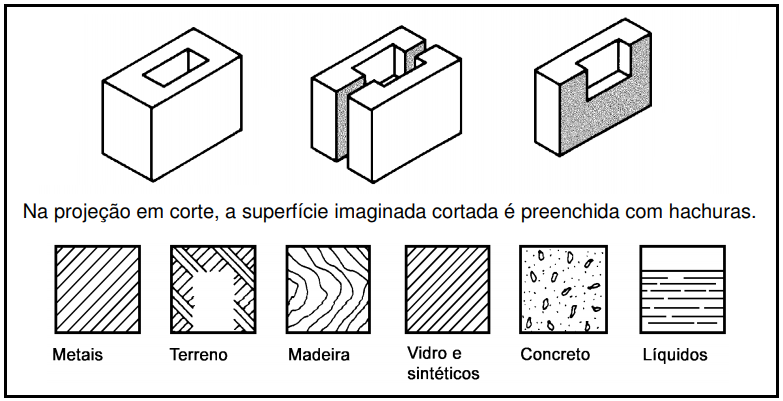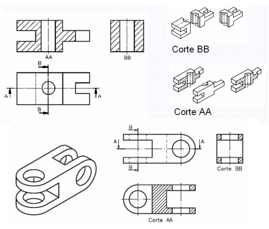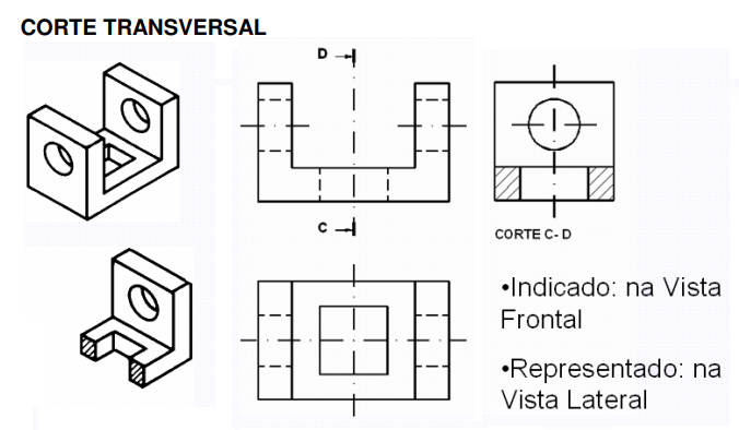 Em desenho técnico, o corte de uma peça é sempre imaginário. Ele permite ver as partes internas da peça