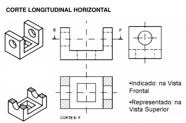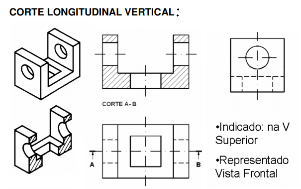 Os cortes podem ser representados em qualquer vista do desenho e são classificados em: