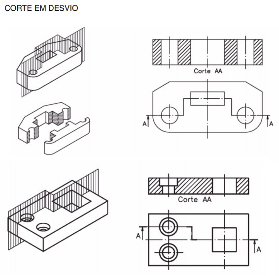 Usado quando um corte não é suficiente para mostrar todos os elementos internos da peça.