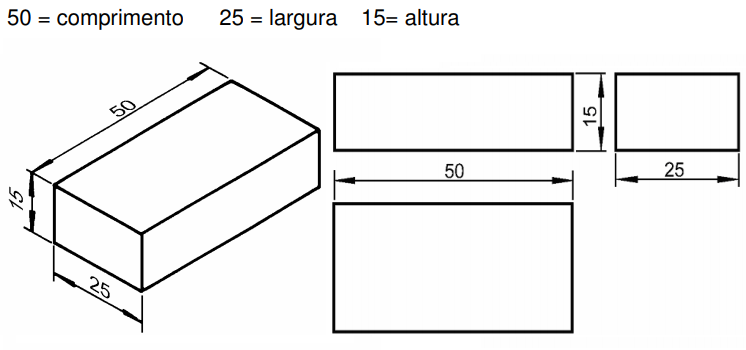 Na cotagem for faces de referência as medidas da peça são indicadas a partir das faces.