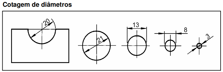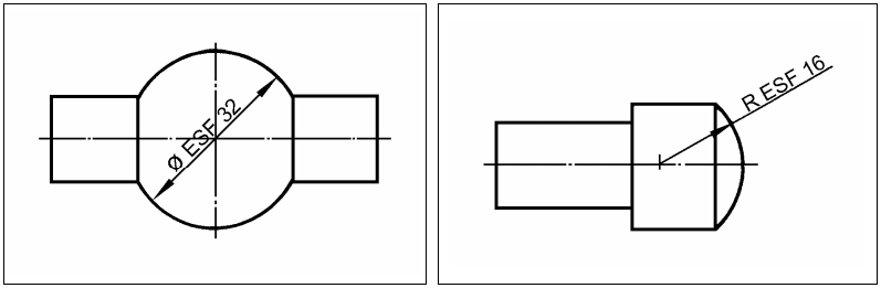 A cotagem dos elementos esféricos é feita pela medida de seus diâmetros ou de seus raios.