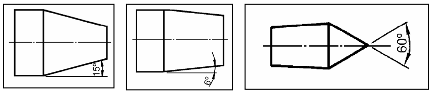 Nos desenhos técnicos de peças com faces ou elementos inclinados, a relação de inclinação deve ser indicada.