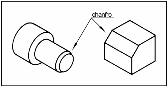 O chanfro é a superfície oblíqua obtida pelo corte da aresta de duas superfícies que se encontram. Existem duas maneiras pelas quais os chanfros aparecem cotados: por meio de cotas lineares e por meio de cotas lineares e angulares.