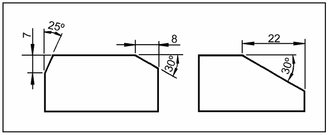 Cotagem de peças com faces ou elementos inclinados Existem peças que têm faces ou elementos inclinados.