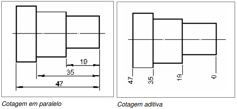 A cotagem por faces de referência ou por elemento de referência pode ser executada como cotagem em paralelo ou cotagem aditiva