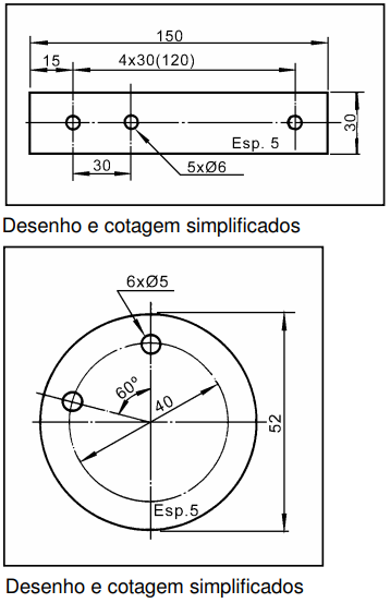 Quando não causarem dúvidas, o desenho e a cotagem podem ser simplificados.