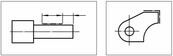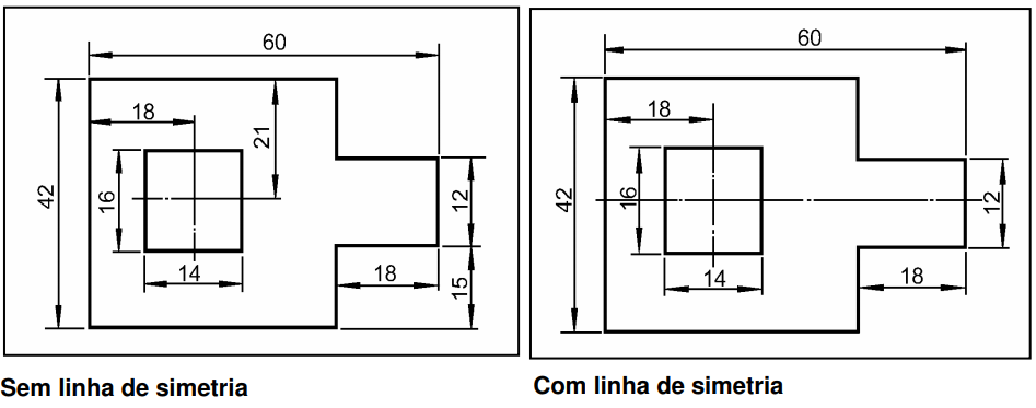 A utilização de linha de simetria em peças simétricas facilita e simplifica a cotagem, conforme os exemplos abaixo.