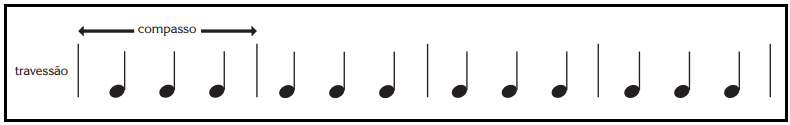 Na música escrita, as notas são agrupadas em compassos. Os compassos são separados por uma linha chamada travessão
