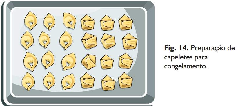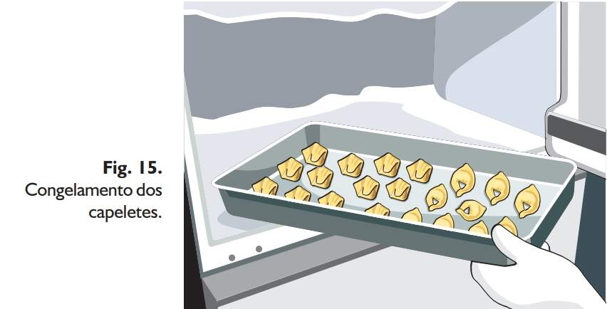 O tempo de congelamento dos capeletes deve ser de aproximadamente 6 horas, à temperatura de -18 ºC, em freezer (Fig. 15).