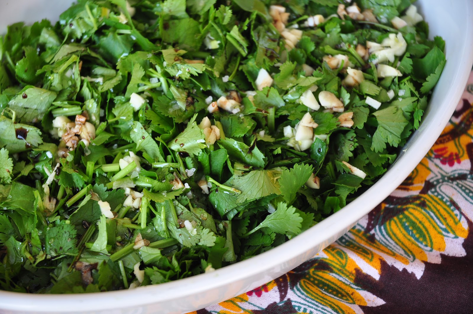 Receita de salada, coentro e uva-passa
