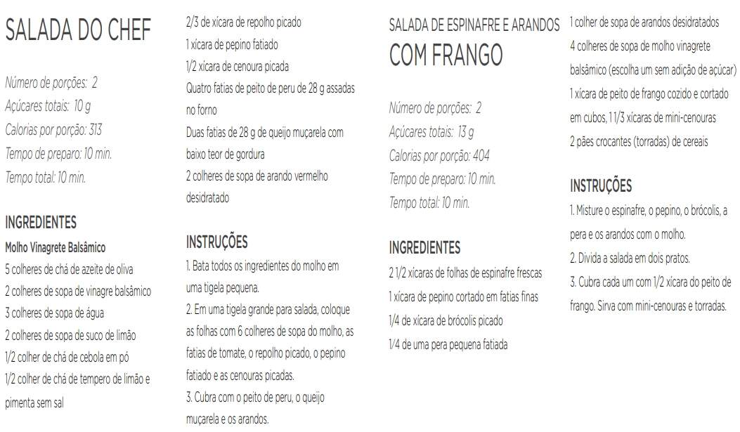 1 Receitas com baixo teor de açúcar: