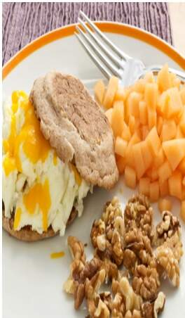 Sanduíche de muffin inglês com ovo, frutas e nozes: