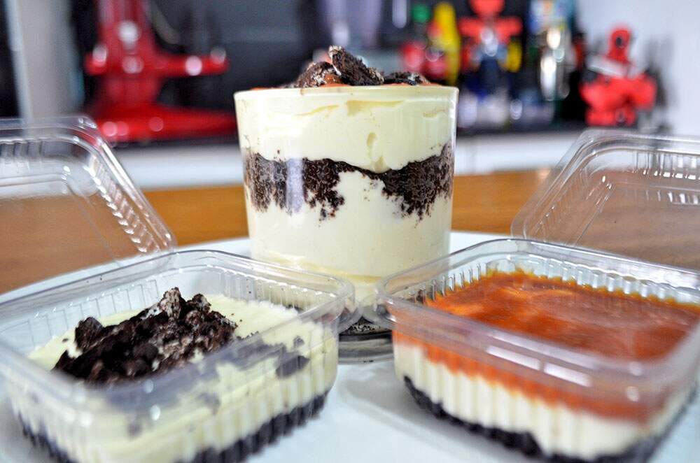 Todos os recheios precisam ser conservados na geladeira em potes individuais.