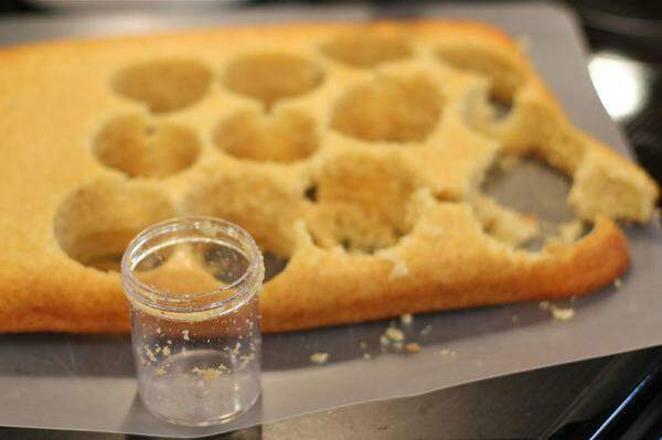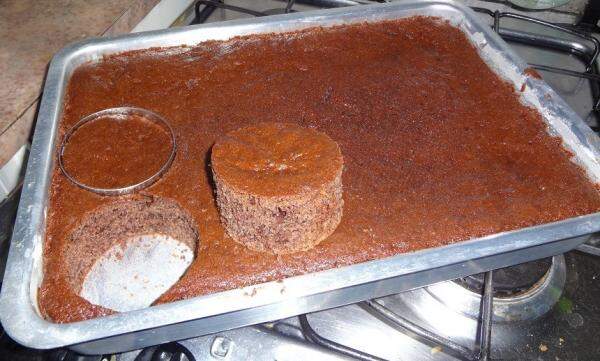 Certifique-se de que os círculos de massa que corta cabem dentro do pote onde irá montar o bolo.