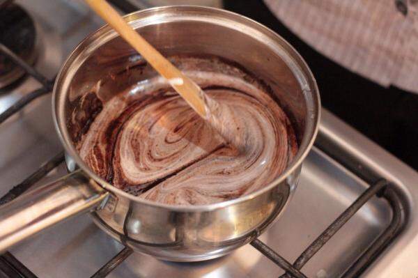 5 - Para a cobertura, que também pode ser usada como recheio, o processo é o mesmo: leve os ingredientes ao fogo e mexa até engrossar.