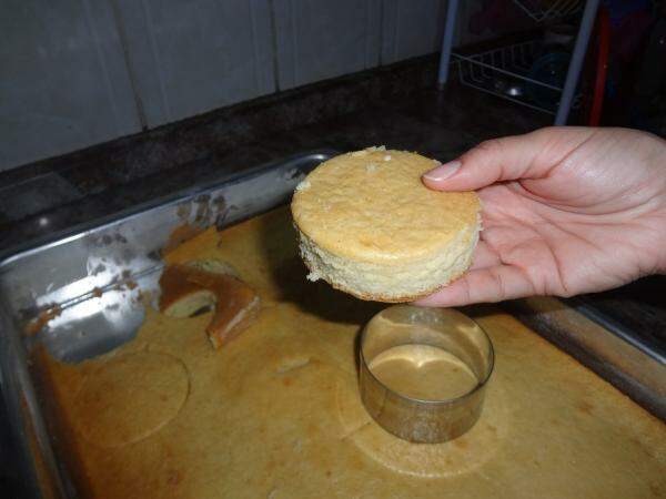 Se as rodelas de bolo ficarem muito altas, como na fotografia, simplesmente corte a meio.