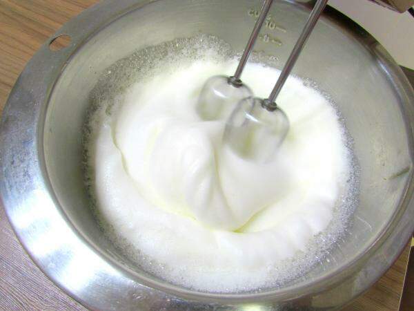 1 - O primeiro passo desta receita de bolo no pote é preparar a massa do bolo. Para isso separe as claras das gemas e bata as claras em neve.