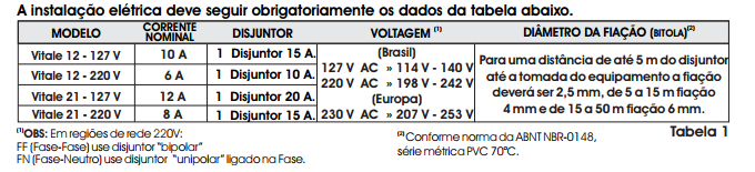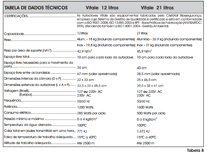 A autoclave Cristófoli Vitale é de simples instalação. Verifique se a rede elétrica encontra-se de acordo com as especificações abaixo. Para isso consulte um eletricista profissional com o acompanhamento de um atendente do CAC pelo fone 0800-44-0800 ou a Rede de Assistência Técnica Autorizada Cristófoli. Veja também "Certificado de Garantia", (Pág. 33) e "Rede de Assistência Técnica Autorizada" ( Pág. 37).