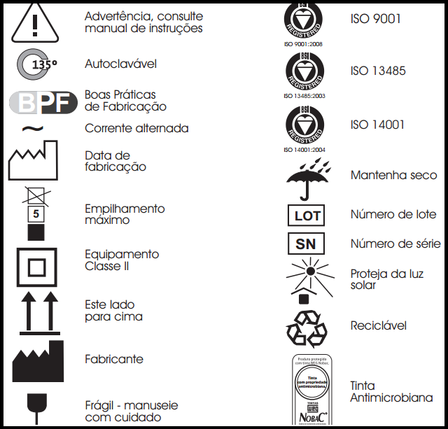 A Cristófoli não se responsabiliza por acidentes que possam ocorrer devido aos sobressaltos causados pelos ruídos produzidos pelo equipamento. O símbolo 14 aparece em alguns locais da autoclave, e registra que é necessário uma atenção especial e que o usuário/operador deve observar suas referências no Manual de Instruções que acompanha o equipamento. No manual poderá ser encontrada a descrição dos potenciais riscos e as ações a serem tomadas em caso de situação adversa. A Cristófoli não se responsabiliza por acidentes e falhas causados pela não observação dos itens acima.