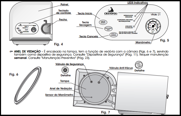 * Consulte “Como Usar a Autoclave Vitale ”, (Item c, pág.13). A não observação deste procedimento poderá causar o escape do Anel de Vedação;