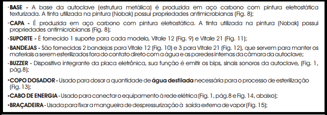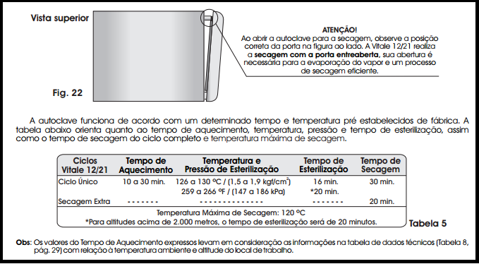 A autoclave Vitale 12/21 requer o cumprimento de alguns procedimentos muito importantes para a esterilização :
