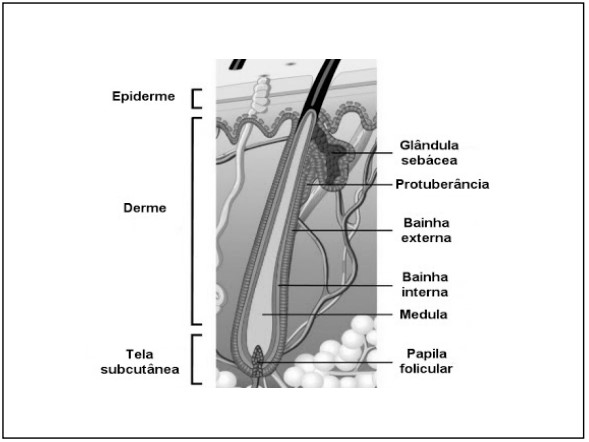 O bulbo piloso – na base do folículo encontra-se uma delimitação denominada bulbo piloso, região onde as células dos pelos são produzida