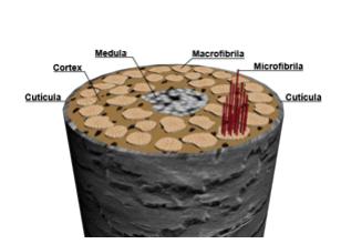 Circundando a Medula, temos o Córtex, que é uma camada composta de feixes de queratina, repletos de grânulos de melanina e unidos por uma cola biológica.