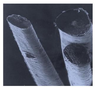 A parte mais externa dos fios, a Cutícula, compõe-se de células tipo escamas sobrepostas, também queratinizadas, com altas concentrações de enxofre, que funcionam como uma barreira protetora para o Córtex e a Medula, e que são responsáveis pelo brilho, maciez e penteabilidade dos cabelos.