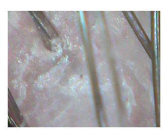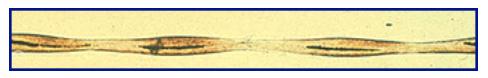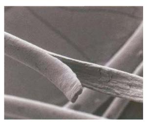 Fraturas transversas da haste, parcialmente imobilizadas pela cutícula intacta. A cutícula, o córtex e o conteúdo de enxofre são anormais. Pode ser confundida com tricorrexe ou tricoptilose.