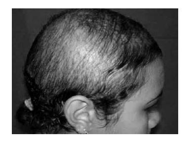 É provocada pelo hábito de arrancar o cabelo, ou por penteados que acarretam tração constante na raiz do cabelo. Causando assim uma alopecia traumática. Há uma ou mais áreas assimétricas de perda de cabelo. Os cabelos são partidos em vários comprimentos acima da superfície e até arrancado da raiz.