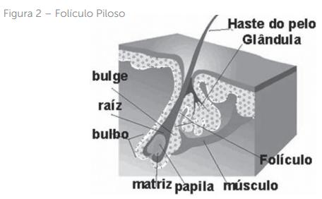 - Bulbo – porção mais inferior do folículo, que contém as células da matriz, responsável pela produção do pelo.